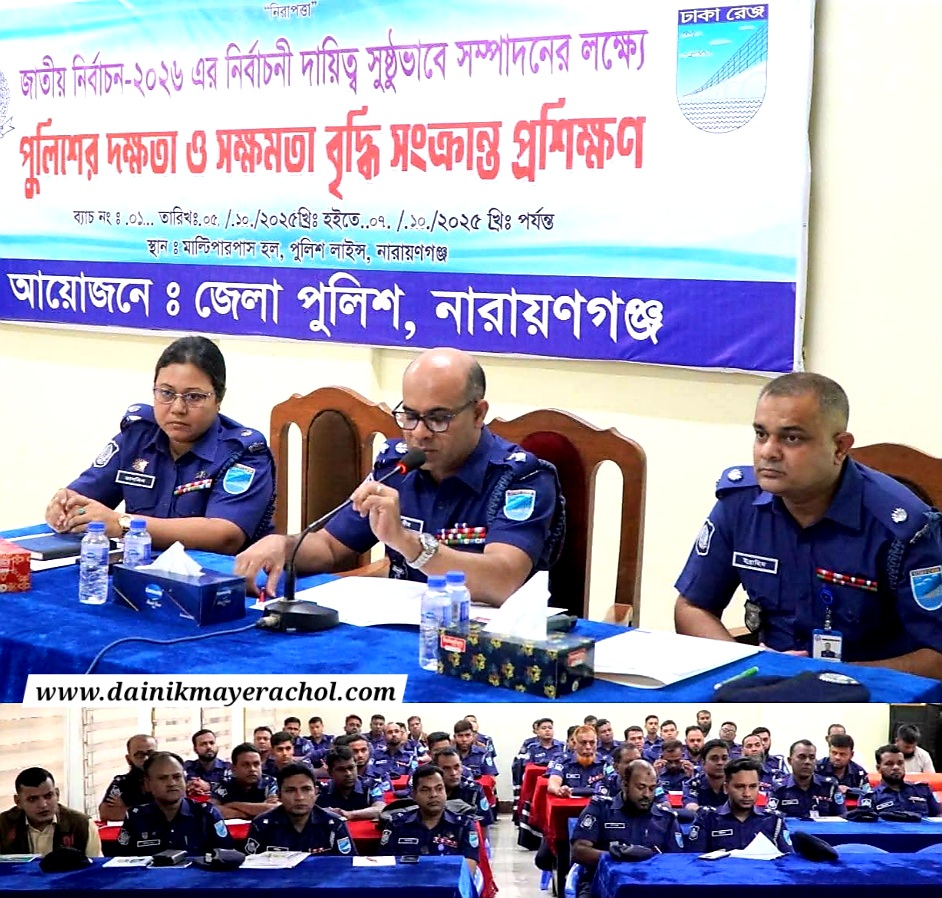 নারায়ণগঞ্জে আসন্ন জাতীয় সংসদ নির্বাচন উপলক্ষে পুলিশের দক্ষতা ও সক্ষমতা বৃদ্ধির লক্ষ্যে প্রশিক্ষণ শুরু।