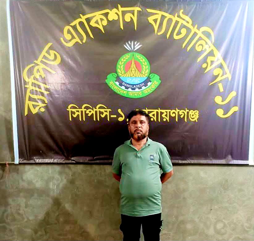 পরবর্তীতে তথ্য প্রযুক্তির সাহায্যে এবং গোপন তথ্যের ভিত্তিতে উক্ত ঘটনার সাথে জড়িত ০৪ নং আসামী মোঃ মোফাজ্জল হোসেন চুন্নু (৫০), পিতা- মৃত তালেব হোসেন, সাং- নয়া মাটি (কুতুবপুর), থানা-ফতুল্লা, জেলা- নারায়ণগঞ্জ'কে নারায়ণগগঞ্জ জেলার সদর ফতুল্লা থানাধীন নয়া মাটি (কুতুবপুর) এলাকা হতে ২১/০৫/২০২৫ ইং তারিখ ১৩১০ ঘটিকায় র্যাব-১১, সিপিসি-১, নারায়ণগঞ্জ এর একটি চৌকস আভিযানিক দল আসামীকে গ্রেফতার করতে সক্ষম হয়। এছাড়াও আসামীর বিরূদ্ধে দেশের বিভিন্ন থানায় বিস্ফোরক আইন, হত্যা চেষ্টা, মাদক, চুরিসহ ১৪ টি মামলা রয়েছে।