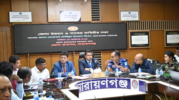 সকল দপ্তরের কর্মকর্তাদের সর্বোচ্চ দায়িত্ব নিয়ে রাষ্ট্রের উন্নয়নে কাজ করার নির্দেশ দিয়েছেন নারায়ণগঞ্জ ডিসি। হারুন অর রশিদ সাগর নারায়ণগঞ্জ জেলা প্রতিনিধি:- উন্নয়ন ও সমন্বয় কমিটির সভায় সকল দপ্তরের কর্মকর্তাদের সর্বোচ্চ